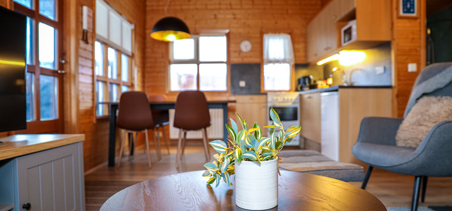They are very cozy, warm and with a lot of charm, located between old, tall trees and nicely furnished. You find everything you need to make a nice meal in a fully equipped kitchen. Smart TV